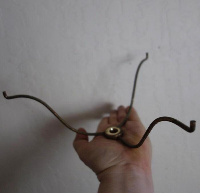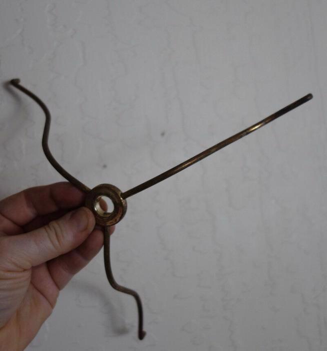 Vintage shade tri- holder ring part lamp old from Fenton brass plated metal old for project 10" diameter round Great condition as shown on the photos. The sale is for one tri-arm shade holder . will hold a 10" base diameter shade. Old vintage , from around middle of the last century or so. No breaks or cracks or missing pieces. Great condition the sale is for 1 part , however I have more available for you to purchase; Please refer to the photos for the measurements.