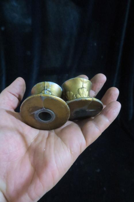 2 shabby cast spelter metal cups. Old patina with charming look, Excellent compound for candle candelabra lamp.