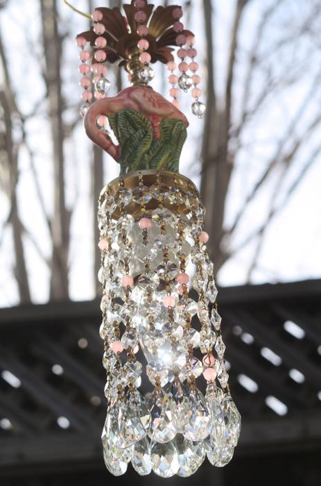 A beautiful, small sized hand painted swag plugin chandelier-dripping with Sparkling , Glitzy ....