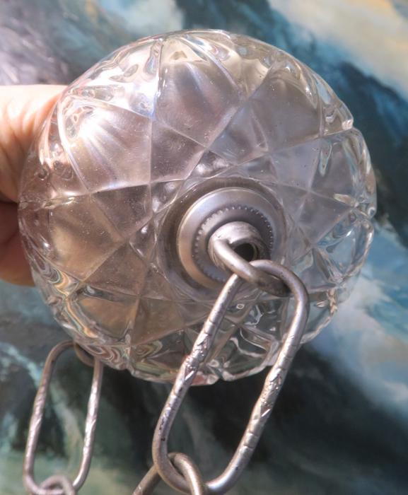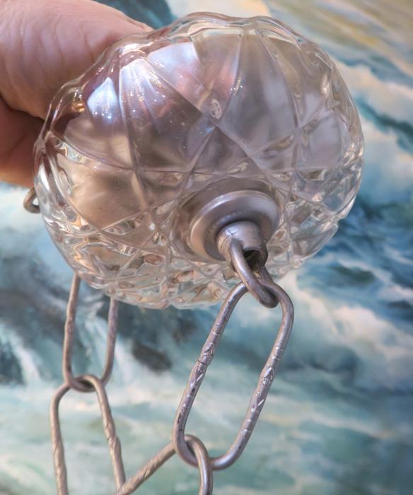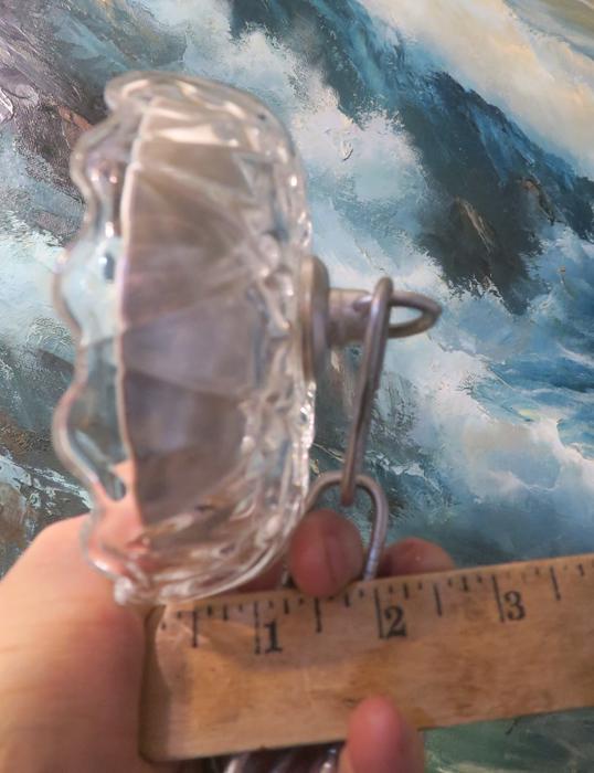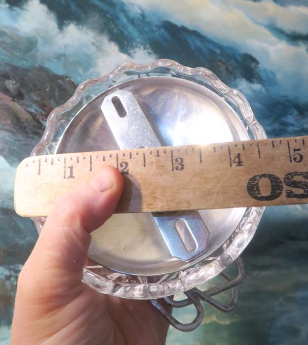 Please refer to the photos for the measurements**** the canopy measures 4.75" in diameter at the widest point. The ornate chain Measures about 12.75" long. If a longer chain is needed - let me know. Tole ceiling cap with crystal clear cut glass; Great condition - as shown - ready to use. Please see photos, they are part of description; the sale is for one set as shown. I do have multiples. In Excellent condition, No chips cracks or scratches
