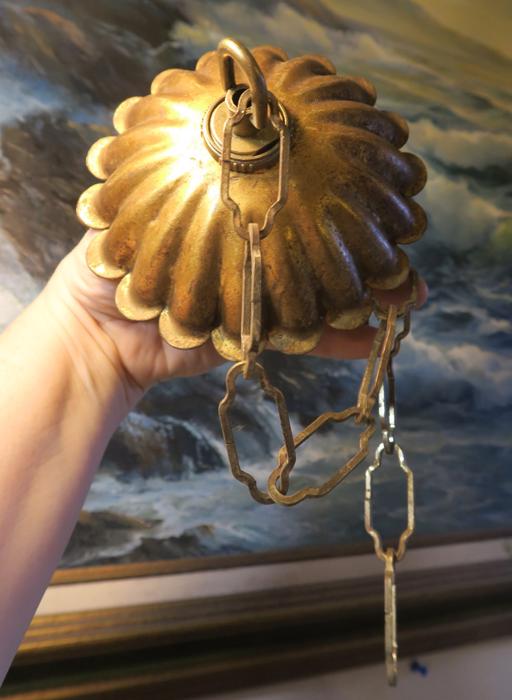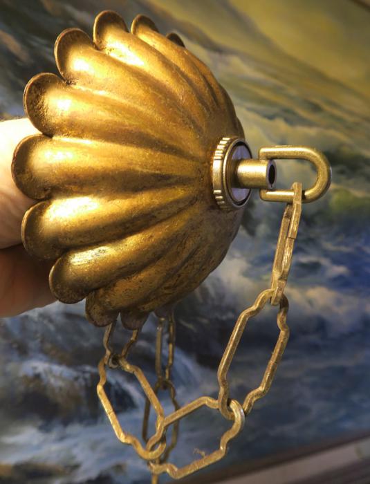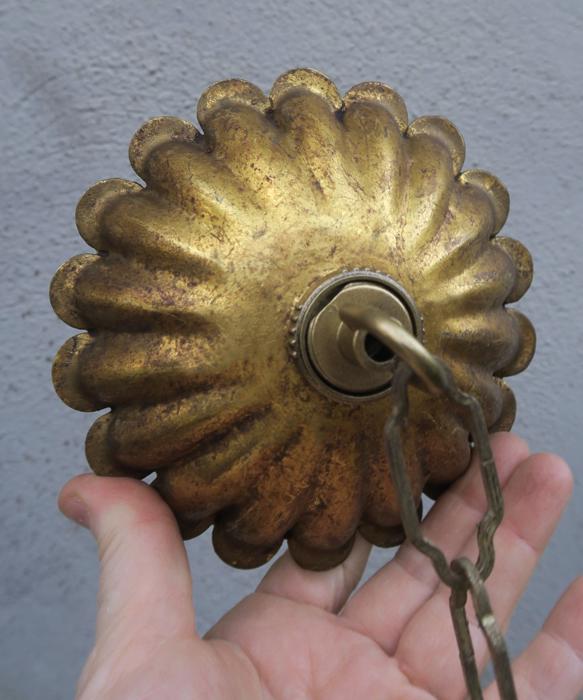 1 Vintage cap from 1940s ~ Italian Tole Metal Ceiling cap canopy chain hanging lamp chandelier part set Please refer to the photos for the measurements**** the Chain Measures about 12.5" long. Vintage ceiling cap canopy with mounting hardware part set - a great part to use to hang your lamp or chandelier;