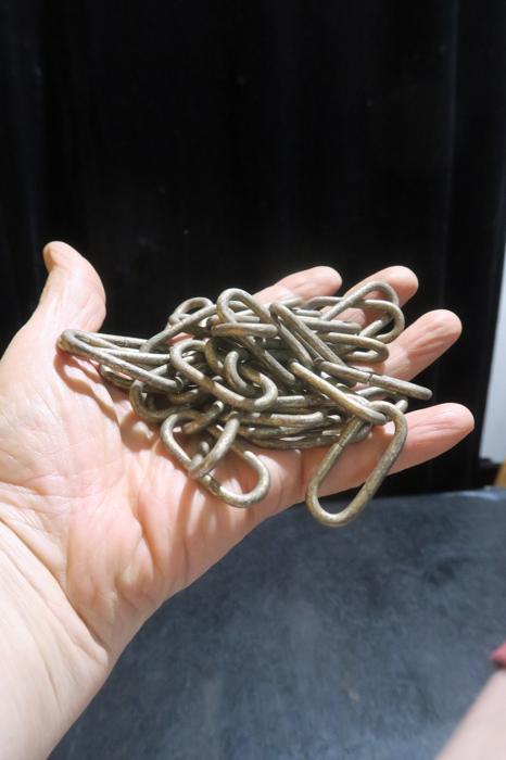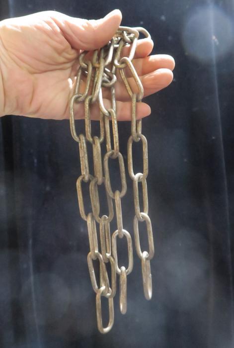 45" old shabby metal 11 gauge chain part lamp chandelier Vintage sturdy - sold as shown as is , as a part