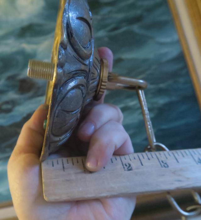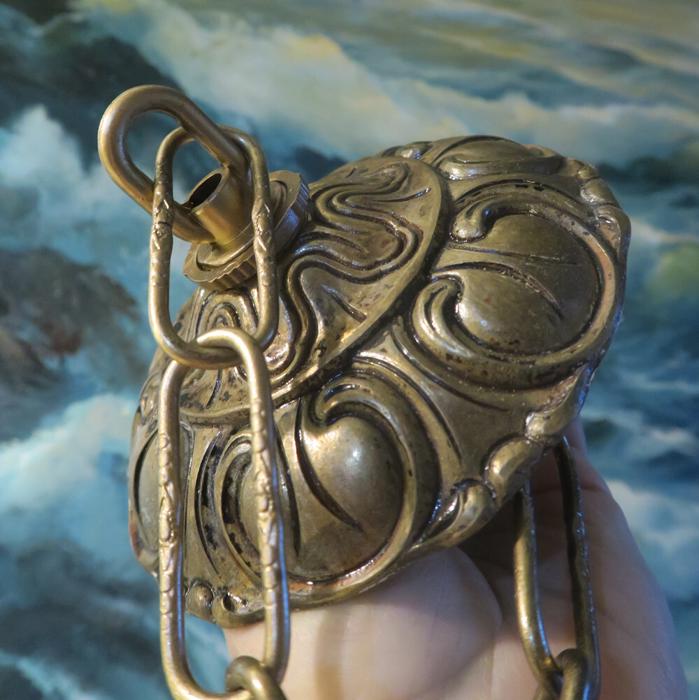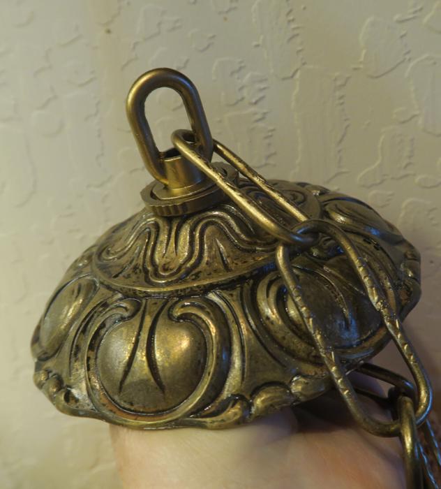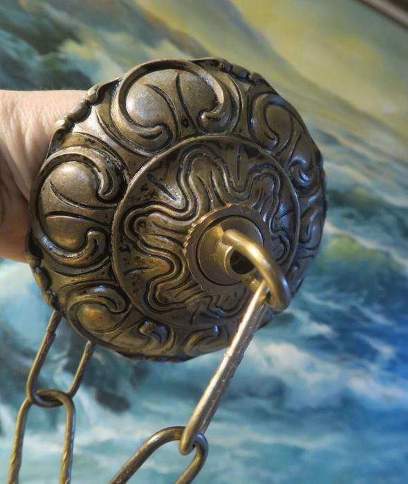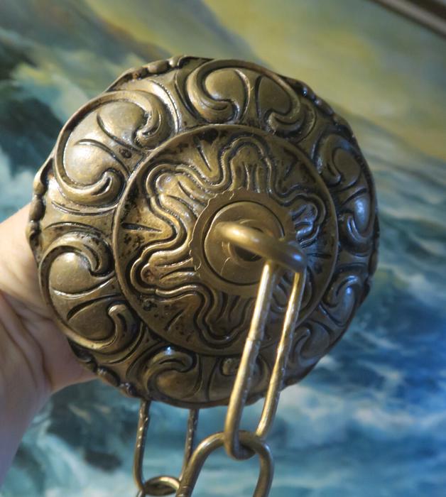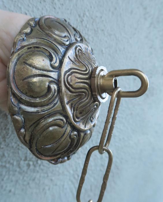 Please refer to the photos for the measurements**** the ornate chain Measures about 12.75" long. (if a longer chain is needed- just let me know). Vintage solid cast brass ceiling canopy with mounting hardware part set - a great part to use to hang your lamp or chandelier; the Canopy has nice patina look and very intricate ornate relief detailed casting. Good condition - as shown - ready to use- Please see photos, they are part of description; the sale is for one set as shown.