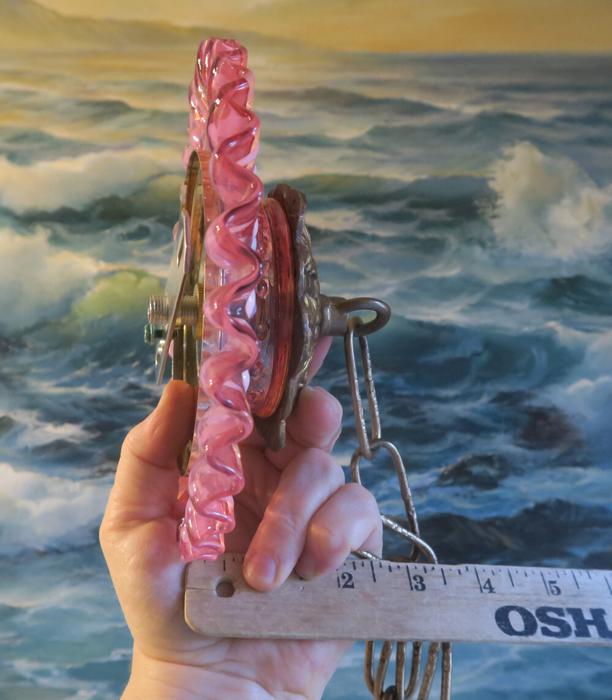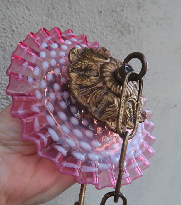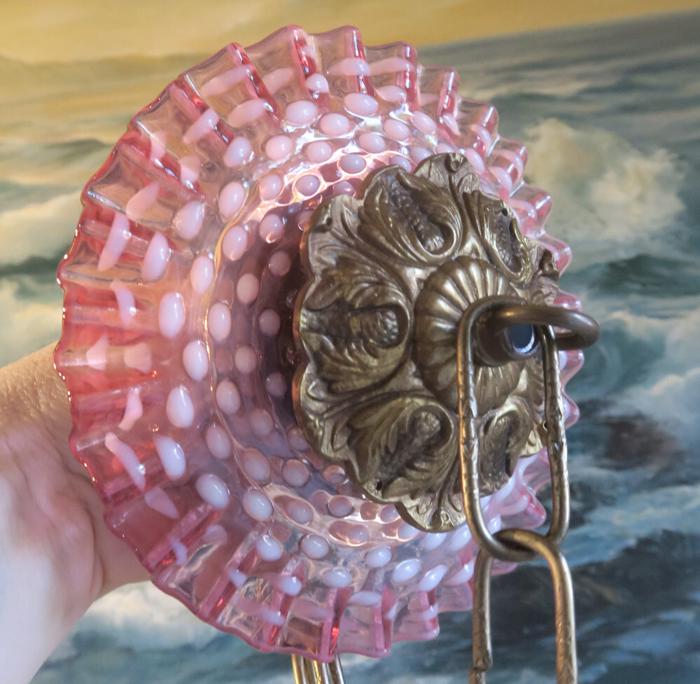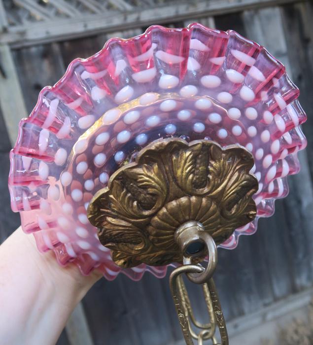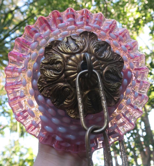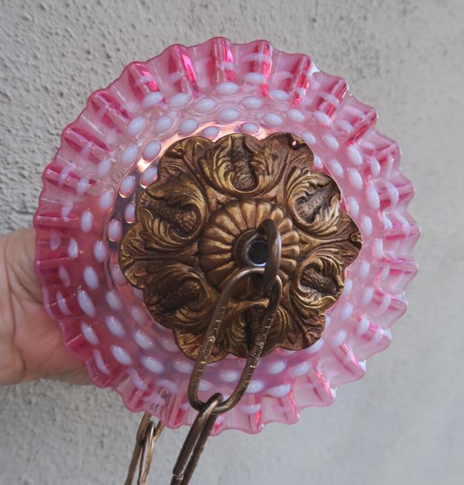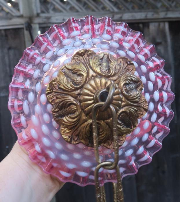 6.25" Canopy ceiling part brass Vintage Fenton hobnail cranberry GLASS lamp