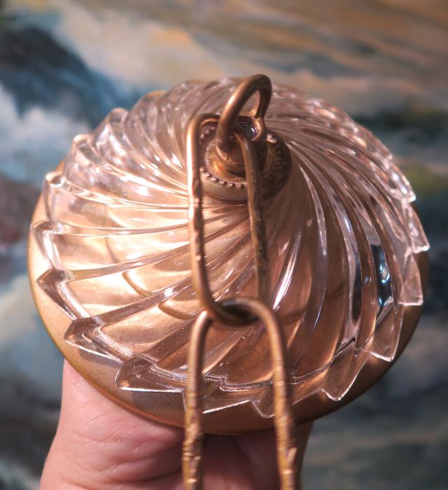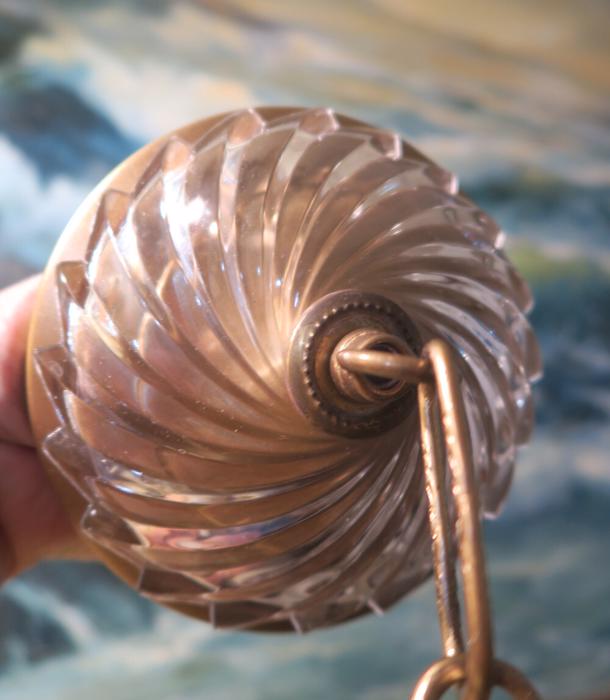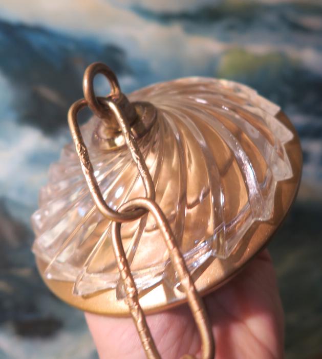 An old Tole Vintage large cut clear swirl Swirl glass and metal canopy chain lamp chandelier part Please refer to the photos for the measurements**** the canopy is about 5" in diameter; the ornate chain Measures about 12.5" long. Tole ceiling cap with cut crystal clear cut swirl glass; Great condition - as shown - ready to use. Please see photos, they are part of description; the sale is for one set as shown. In Excellent condition, No chips cracks or scratches