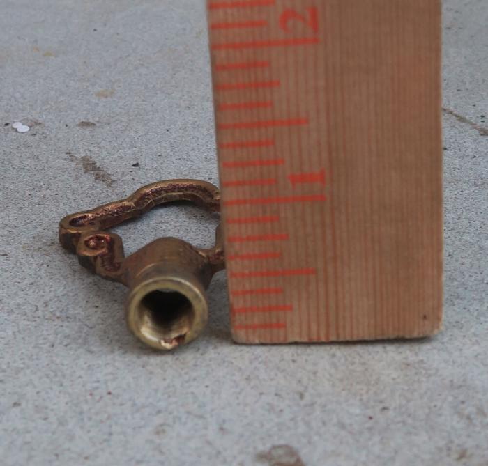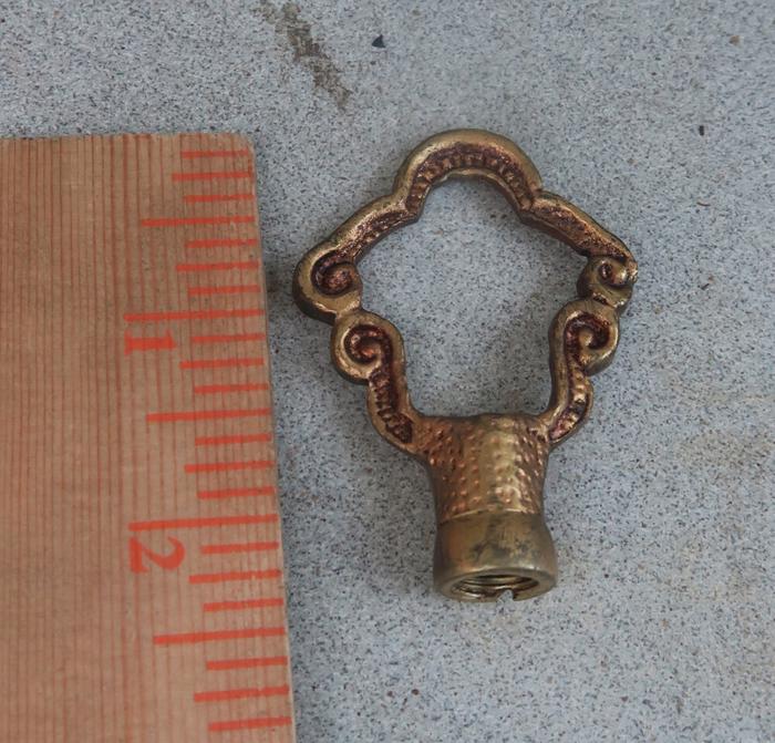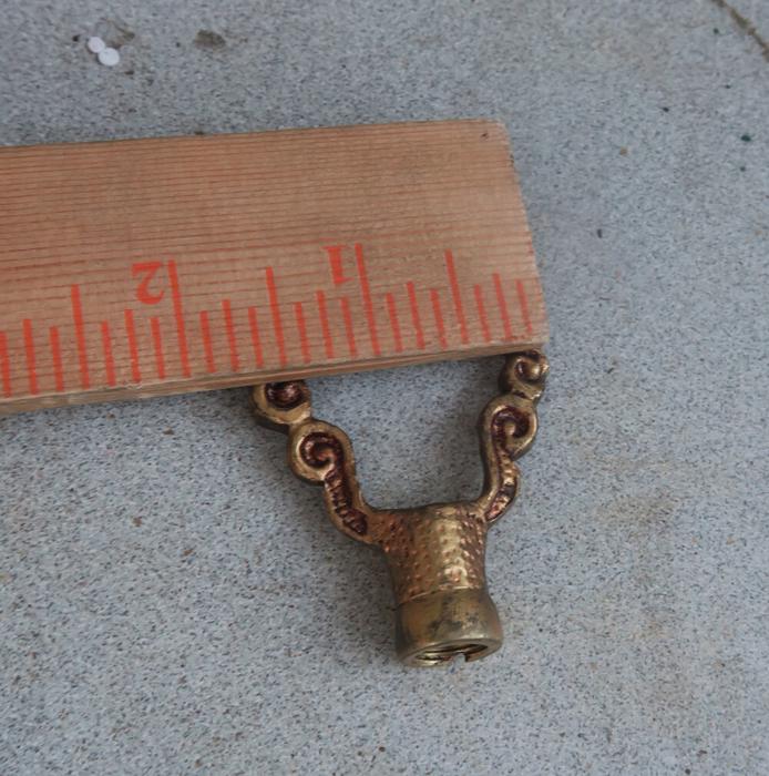 Please refer to the photos for the measurements**** Offered is this top post center chandelier hook loop part shown on the photos, gilt cast brass or bronze metal. Standard size threaded loop 1/8 IP ; It came from an old vintage Spanish chandelier. Very ornate designs, dark old patina on the surface; Good old condition; See photos - they are part of description. The sale is for 1 loop part only;