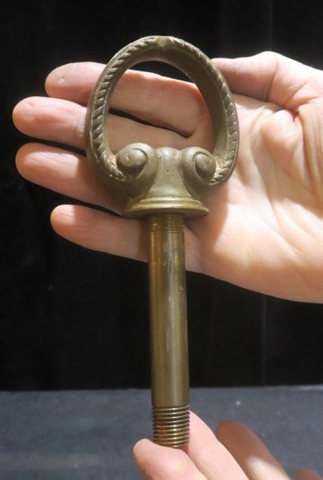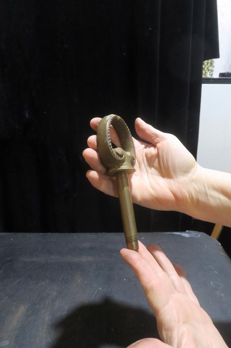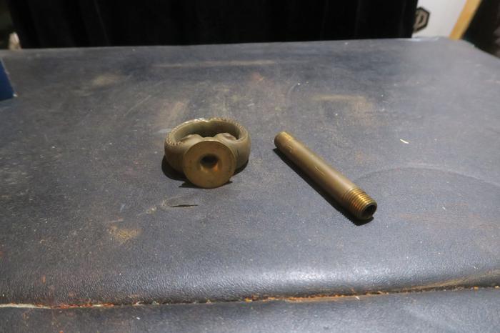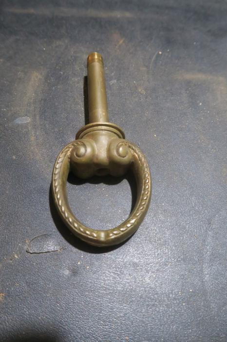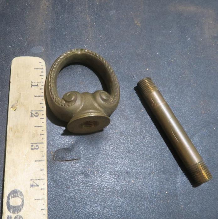 Please refer to the photos for the measurements**** heavy cast gilt brass lamp chandelier Loop hook Part Vintage massive brass lamp chandelier loop hook Part Vintage large threaded hole Spain - 2parts with threaded pipe
