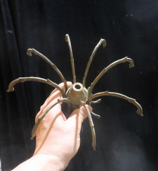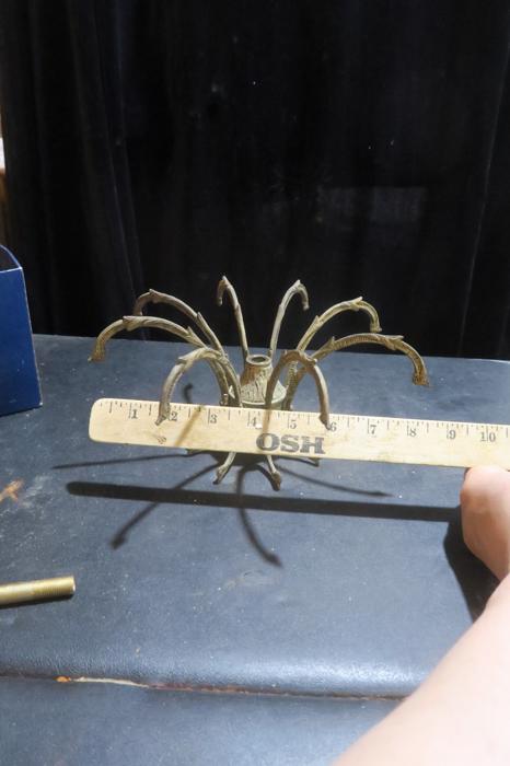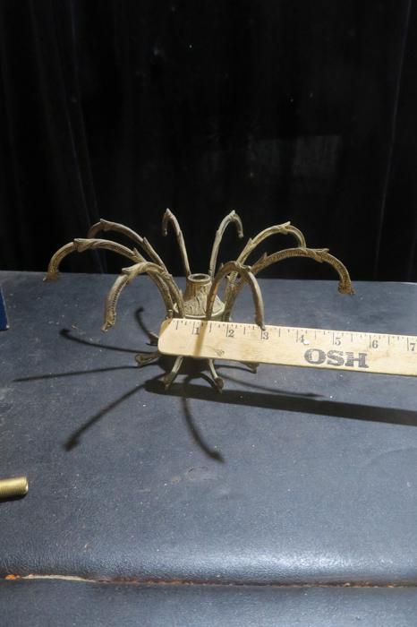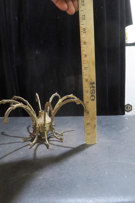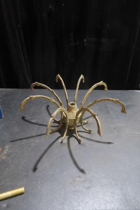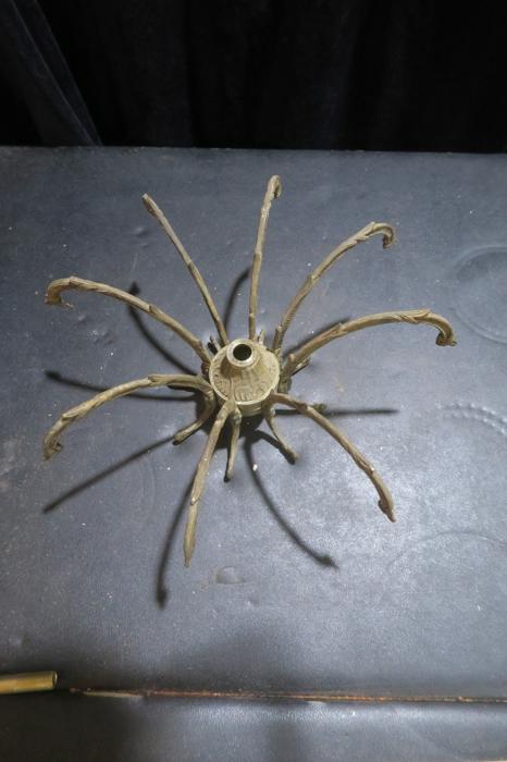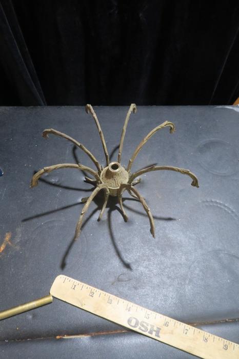 1 vintage waterfall fountain lamp gilt cast Brass chandelier center spider part original gilding ~ Spain~part great patina- from Pineapple chandelier Please refer to the photos for the measurements*** Chandelier top center spider part, cast brass bronze ; Old patina with shabby charming look, all original finish. Excellent compound for electrical candelabras, chandeliers or lamps. It is old, vintage, from around 1950s and came from a Spanish brass chandelier. Please see the photos - they are part of description Good condition, no cracks or any damage, all original.